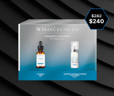 Anti-aging duo for sensitive, dehydrated and redness-prone skin. C E Ferulic® features a patented synergistic combination of 15% pure vitamin C (L-ascorbic acid), 1% vitamin E (alpha tocopherol), and 0.5% ferulic acid to enhance protection against environmental aggressors and visibly improve fine lines, wrinkles, loss of firmness, and skin brightness (U.S. Patent No. 7,179,841). Clear Daily Soothing UV Defense SPF 50 delivers daily broad-spectrum UVA/UVB protection while soothing, hydrating and reducing the appearance of visible redness, powered by patented Netlock™ hybrid technology for a light, non-greasy feel. Non-comedogenic and suitable for all skin types. Save $42 compared to buying products separately.