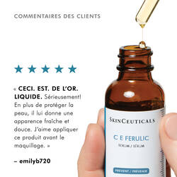 «C E Ferulic est le premier produit que j’utilise en me levant le matin et le plus important pour combattre les signes du vieillissement et protéger ma peau contre les dommages environnementaux.»